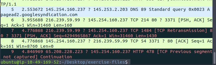 TShark can provide colourised outputs to help analysts speed up the analysis and spot anomalies quickly. If you are more of a Wireshark person and feel the need for a Wireshark-style packet highlighting this option does that. The colour option is activated with the --color parameter, as shown below.